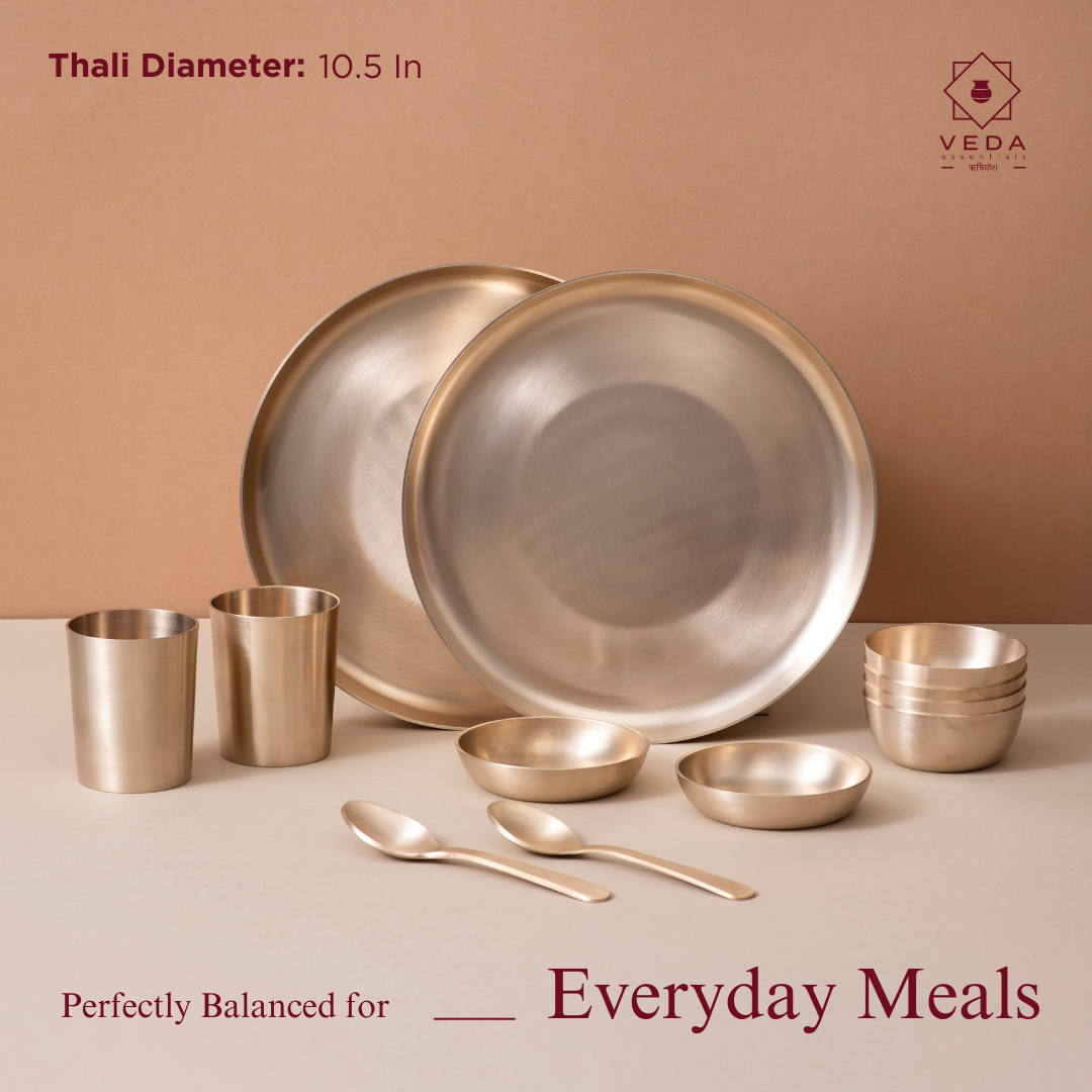 36-Piece Kansa Dinner Set • Serves 6 • Antique Matte Finish • 100% Lead Free (कांसे का डिनर सेट)