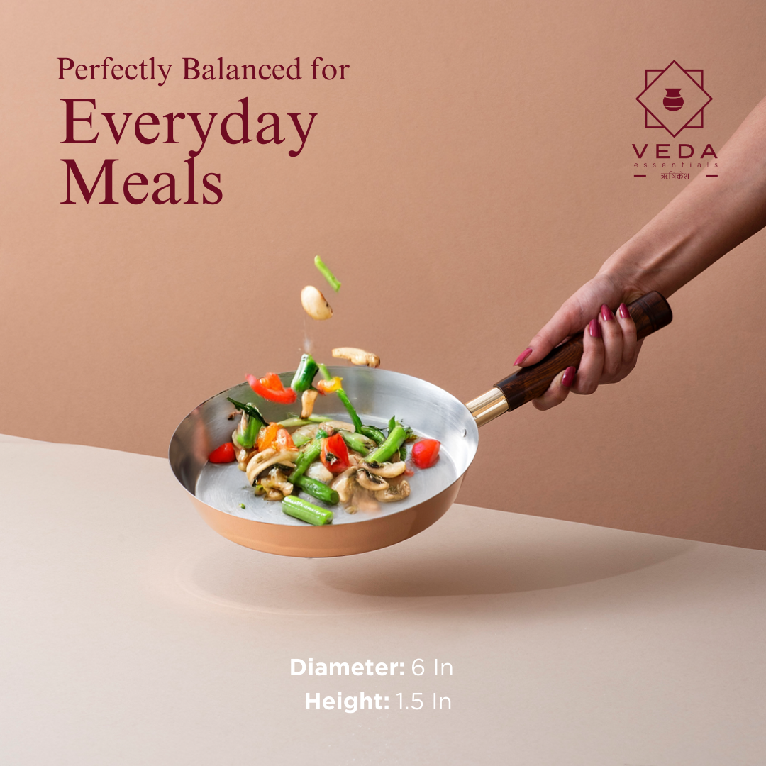 Traditional Copper Fry Pan with Tin Coating and Insulated Handle (तांबा का फ्राई पैन)